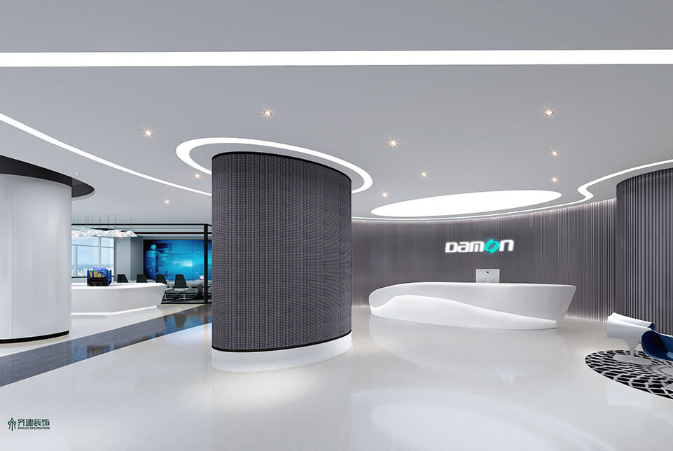 設計概念立足于物流科技創新理念,與企業圍繞技術創新核心競爭力相聚合,依托流動型曲線的張力,使得整個辦公空間更具立體感和動態美感,以匯聚、循環、開放逐層遞進的狀態展開空間敘事主線。